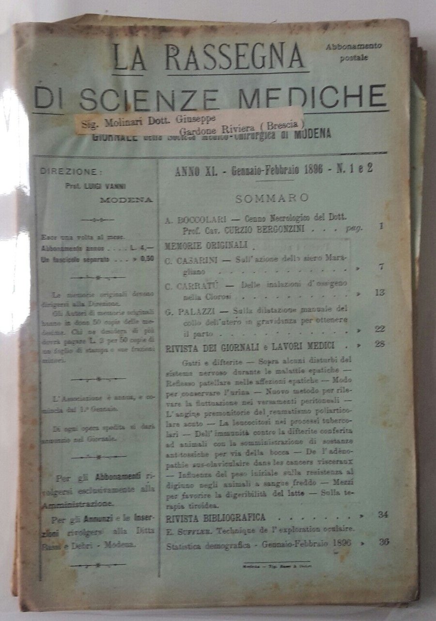 LA RASSEGNA DI SCIENZE MEDICHE SOCIETA' MEDICO CHIRURGICA DI MODENA 1896 ANNATA