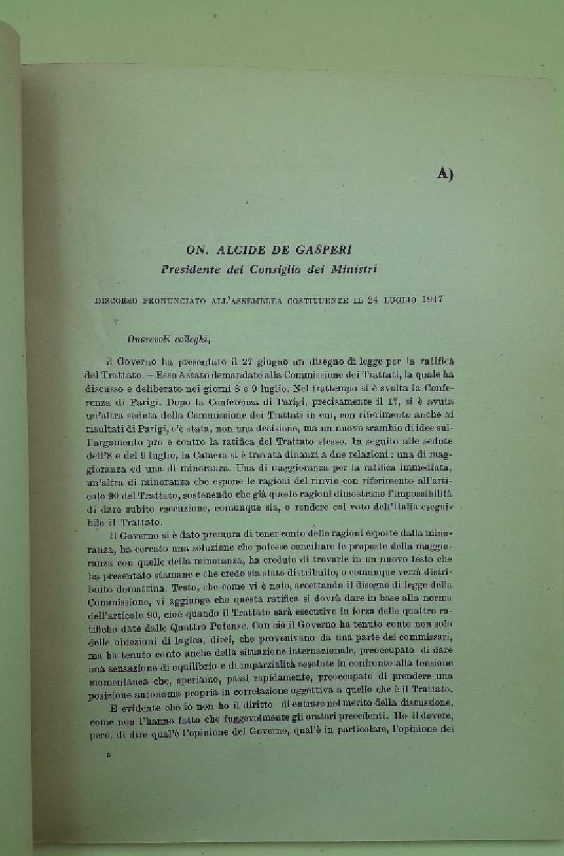 LA RATIFICA DEL TRATTATO DI PACE NELL'ESPOSIZIONE DEL GOVERNO E NELLE DECISIONI DELL'ASSEMBLEA COSTITUENTE(1947)