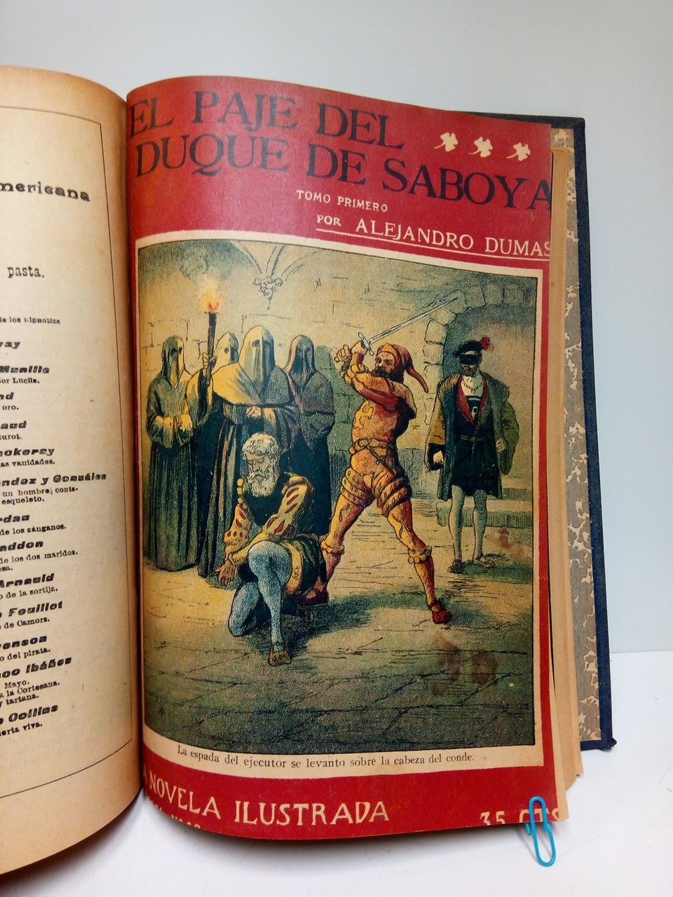 Madrid: La Novela Ilustrada, [s.a., ca. 1912].- Conjunto de 7 Tomos formando un solo Volumen, (109-106 p.; 101-100-94 p.; 100-94 p.); Ilustrados con láminas a toda plana e ilustraciones intercaladas entre el texto; 4º mayor (25,6 x 18 cm); Todos los tomos van en un solo volumen encuadernado en Tela de la época, conservando las cubiertas anteriores originales pintadas a todo color.- (Col. La Novela Ilustrada. Nos. 72-73; 74-75-76; 69-70. Novelas Completas de Alejandro Dumas).* Tiene ligeras rozaduras en la cejilla de la cabeza del lomo. Por lo demás muy bien. LITERATURA Y ESTUDIOS LITERARIOS EXTRANJEROS DE LOS SIGLOS XVI-XXI