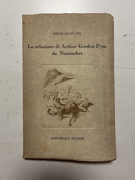 La relazione di Arthur Gordon Pym da Nantucket, prima edizione marzo 1943, pp. 209, forato 12 x 19,5.<BR>Copertina morbida color beige con piccola illsutazione la centro del piatto anteriore. Titoli in nero. Volume a cura di Gabriele Baldini. <BR>Piatti leggermente bruniti. Lieve ingiallimento delle pagine dovuto al tempo. Nel complesso condizioni molto buone.