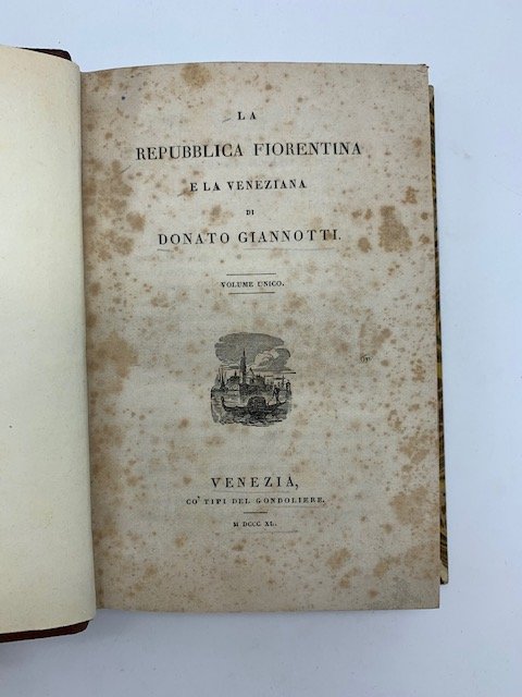 In 16 (cm 10,5 x 16), pp. XII + 445 + (1 bianca). Fioriture sparse alle pagine. Legatura moderna in mezza pelle.