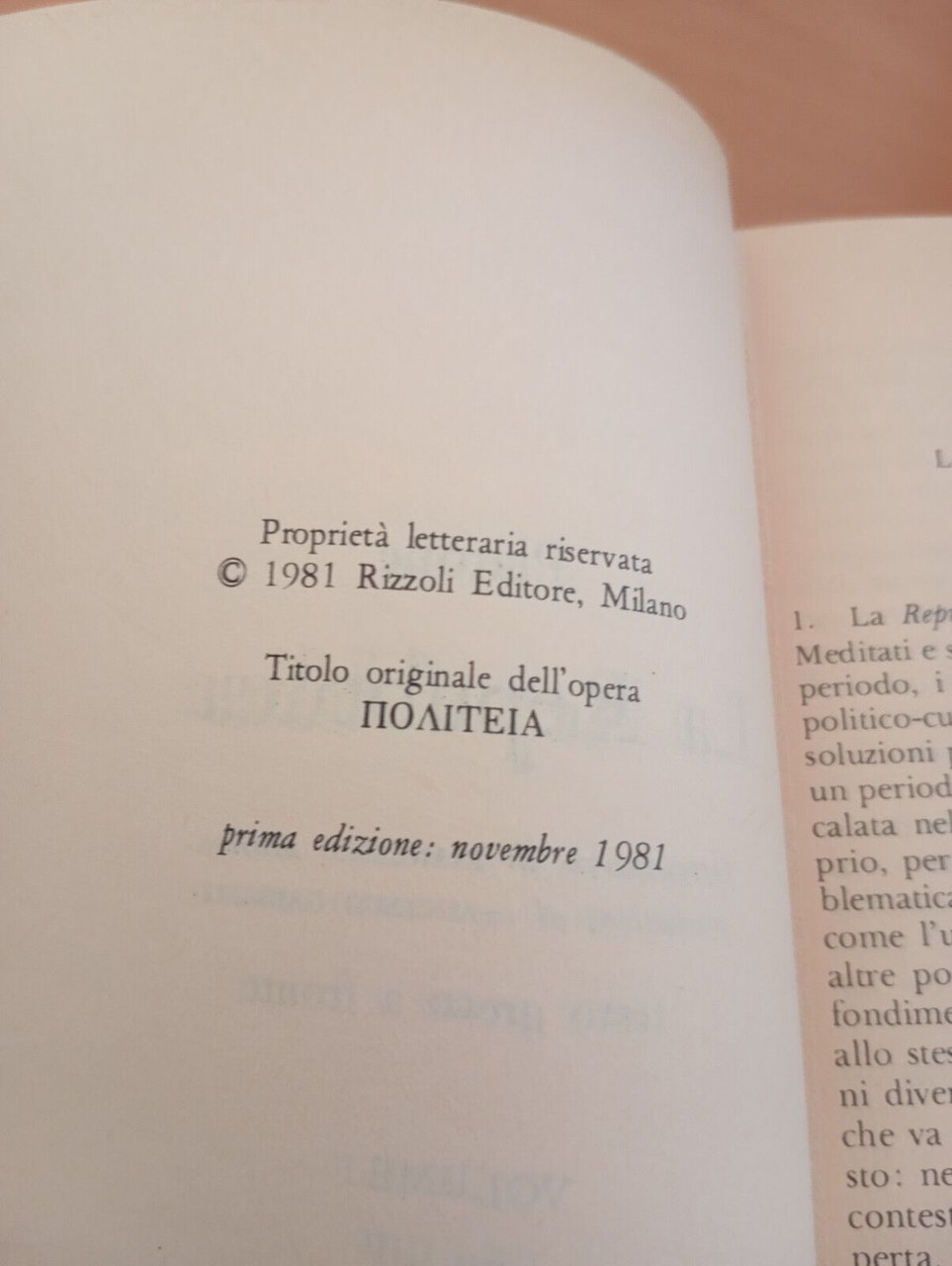 La Repubblica, Platone, due volumi, testo greco a fronte, Rizzoli, 1981