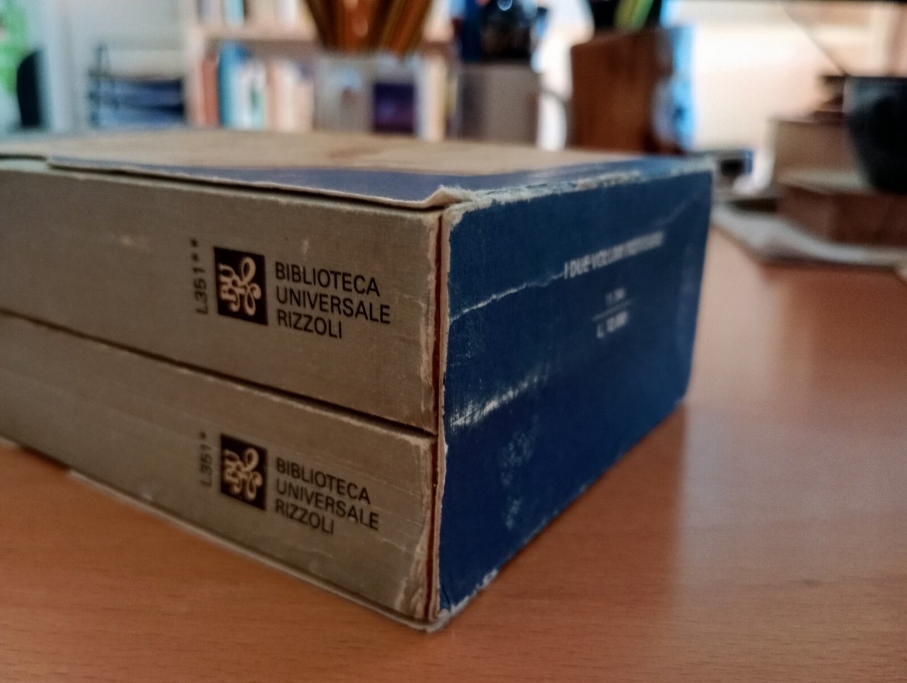 Cofanetto con qualche ammaccatura ai bordi, come da foto. Legatura con cedimenti ma non compromessa, presenti pochissime sottolineature, come da foto