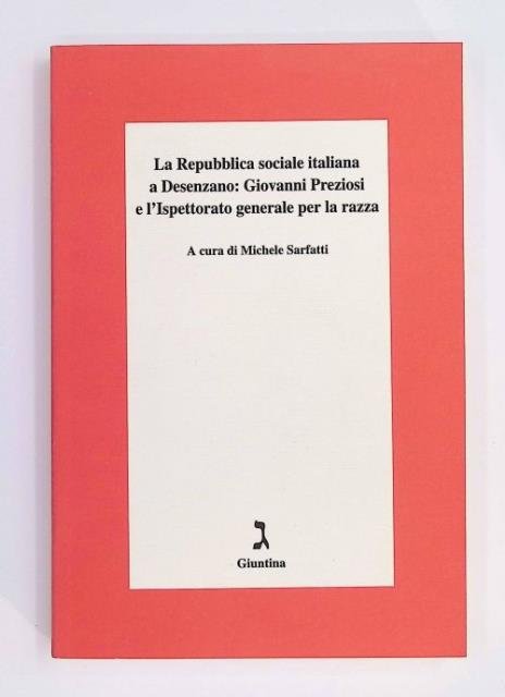 220 p. ; 21 x 14 cm. L'Ispettorato generale per la razza venne creato da Benito Mussolini nel marzo 1944, durante la Repubblica sociale italiana, col compito di intensificare le campagne antiebraica, razzista in genere, antimassonica. Il dittatore nominò Ispettore generale per la razza Giovanni Preziosi, decano degli antisemiti italiani. L'Ispettorato ebbe sede nel comune di Desenzano del Garda e fu attivo fino all'aprile 1945. Questo volume contiene le relazioni presentate all'omonimo Convegno di studi, tenutosi a Desenzano il 24 gennaio 2007 in occasione del «Giorno della Memoria» e organizzato dal Comune di Desenzano del Garda e dalla Fondazione Centro di Documentazione Ebraica Contemporanea Cdec di Milano. Si tratta del primo convegno in assoluto sul tema. Il volume contiene saggi di studiosi qualificati, quali Gaetano Agnini, Francesco Cassata, Francesco Germinario, Liliana Picciotto, Mauro Raspanti, Marino Ruzzenenti e Michele Sarfatti, che mettono a fuoco temi quali la politica antiebraica della Repubblica sociale italiana, la sua attuazione in provincia di Brescia, l'attività dell'Ispettorato generale per la razza nel 1944-1945, il pensiero e gli scritti antisemiti di Preziosi, la sua collocazione nel contesto dell'antisemitismo italiano. Brossura editoriale, coperta in cartoncino flessibile opaco di colore rosso/bianco. Lievi segni del tempo alla coperta, per il resto libro integro. Codice libreria 9917.
