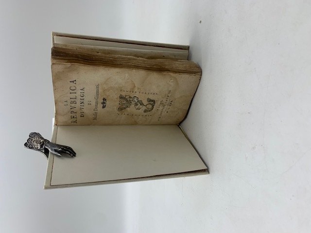 In 16, cm 10 x 16,5, pp. 220 con 1 tavola xilografica ripiegata in fine. Foderata e con mancanza nella parte centrale. Gore diffuse con indebolimento delle prime 2 carte. Riparazioni al frontespizio e alla seconda pagina. Bella marca tipografica del Griffo al frontespizio. Piena pergamena moderna. Forse l'opera più nota di questo scrittore politico, pubblicata a Roma nel 1540, nella quale ragiona sulla forma della Repubblica di Venezia. Fiorentino, fu avversario della famiglia De Medici. Dopo la terza cacciata dei Medici, successiva al 'Sacco di Roma' nel 1527, ottenne l'incarico di segretario dei Dieci. Nel 1530 con la fine della repubblica di Firenze fu imprigionato ed esiliato. Tornò a Firenze nel 1536. Fu poi al servizio del Cardinale Niccolò Ridolfi e poi del Cardinale Francois Tournon a Roma. Nel 1562 si stabilì a Venezia. Manca a Cicogna.