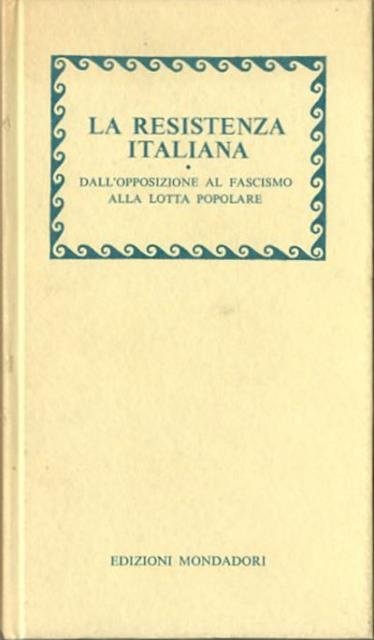 Edizione fuori commercio. 298 p. : ill. ; 19 x 11 cm. Edizione fuori commercio a cura del Ministero della Pubblica Istruzione. Sommario. Parte prima: L'antifascismo. Alceo Riosa, Socialismo e valori di libertà nella opposizione al fascismo (L'esilio di Turati - L'unificazione socialista - Giustizia e Libertà - L'unità d'azione tra socialisti e comunisti - La guerra di Spagna - Verso la Resistenza); Paolo Alatri, Il Partito comunista italiano dall'azione clandestina alla lotta partigiana; Camillo Brezzi, L'antifascismo cattolico (La Chiesa fra popolarismo e fascismo - La crisi del P.P.I. - L'antifascismo politico - L'antifascismo religioso - La nascita della D.C.). Parte seconda: La Resistenza. Enzo Forcella, Dalla rivoluzione di Palazzo del 25 luglio '43 alla insurrezione popolare del 25 aprile '45; Vittorio e Giuntella, La lotta di un popolo (L'8 settembre del '43 - Le radici della Resistenza - Una guerra popolare - La Resistenza nei lager - L'Italia partigiana - Ideologia e lotta armata - I Comitati di Liberazione Nazionale - Le fasi della guerra partigiana - La Liberazione); Pietro Scoppola, La difficile eredità della Resistenza. Legatura editoriale, coperta rigida in cartoncino, con titolo al piatto e al dorso impresso con colore verde, con 36 illustrazioni fotografiche in b/n nel testo e 10 tavole a colori fuori testo. Codice libreria 1774.