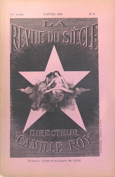 Lyon, 1888. In/8 broché, couverture illustrée (photolithographie des Frères Lumière), 1 planche en héliogravure des Frères Lumière (Auimé Vingtrinier°, p. 2 à 60. Camille Roy (1851-1922) est un poète et chansonnier. D'origine modeste, il apprit la comptabilité et finit par occuper un poste important dans les bureaux d’une banque. En 1886, il réunit ses premiers poèmes en un volume sous le titre Pages d'amour. En 1887, il fonda la Revue du siècle, revue littéraire, artistique et scientifique. Cette revue parut pendant 13 années. Article sur Aimé Vingtrinier, poésies et chansons.