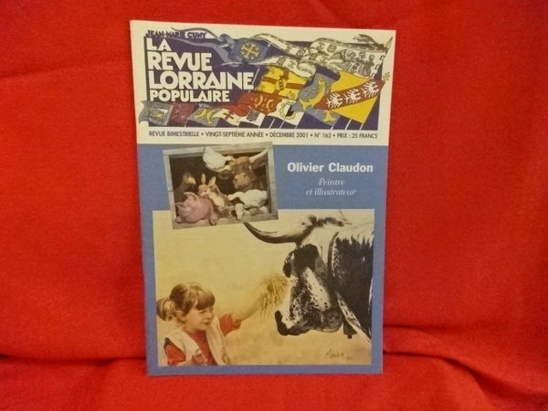 Nancy, R. L. P., 2001; in-4, 52 pp., couverture illustrée et cahier agrafés. Sommaire : Nouvelles des Arts et Lettres ; Musées lorrains : la Maison de la forêt et du bois des Vosges ; l'Ancienne Abbatiale Notre-Dame et St-Hydulphe de Moyemoutier ; le Viager… ou comment assurer ses vieux jours au XVIIème siècle en Lorraine ; la Justine Putet : le râteau chinois ; la Cure d'air et son funiculaire ; la Cuisine lorraine : 30 ans cette année ! ; le Chariot alias la charrette ; Danses macabres de Lorraines ; Origines de la réglementation du 26 décembre en Alsace et Moselle ; un Mouvement indépendantiste avant 1914 ; la Guerre à vingt ans ; le Carnet d'un soldat ; les Livres ; la Musique à bouchel ; les Lunettes de la Lucienne ; les Proverbes = sagesse des Nations ; l'Épicéa dans les Vosges ; Olivier Claudon, peintre et illustrateur. Quelques illustrations.