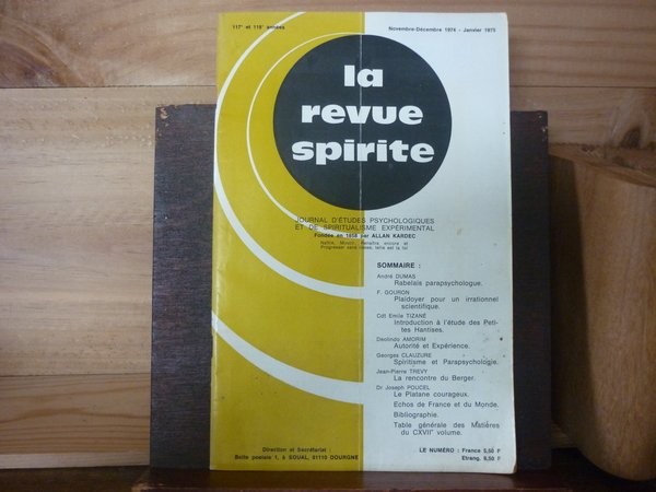 117e et 118e années, Novembre-Décembre 1974 - Janvier 1975. Fondée en 1858 par ALLAN KARDEC