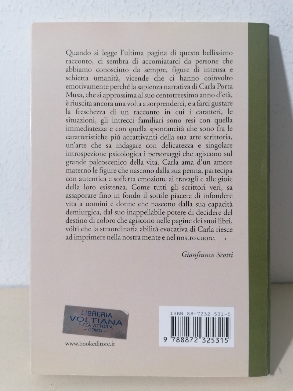 Editore: Book Collana: Minerva. Nuova serie Data di Pubblicazione: 2005 EAN: 9788872325315 ISBN: 8872325315 Pagine: 83 Formato: brossura 2H-9-2 Trama del libro Quando si legge l'ultima pagina di questo racconto, ci sembra di accomiatarci da persone che abbiamo conosciuto da sempre, figure di intensa e schietta umanità, vicende che ci hanno coinvolto emotivamente perché la sapienza narrativa di Carla Porta Musa, che si approssima al suo centotreesimo anno d'età, è riuscita ancora una volta a sorprenderci, e a farci gustare la freschezza di un racconto in cui i caratteri, le situazioni, gli intrecci familiari sono resi con quella immediatezza e con quella spontaneità che sono fra le caratteristiche più accattivanti della sua arte scrittoria, un'arte che sa indagare con delicatezza e singolare introspezione psicologica i personaggi che agiscono sul grande palcoscenico della vita. (Gianfranco Scotti).