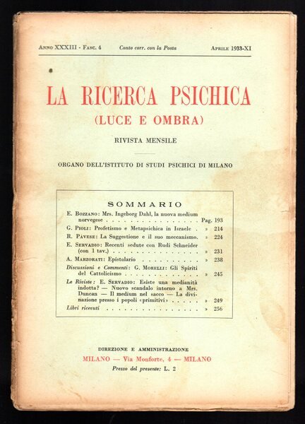 Opuscolo vintage. Anno XXXIII - Fasc. 4 - aprile 1933. Illustrazioni in bn fuori dal testo. Legatura allentata, macchie in copertina. Segno del tempo.