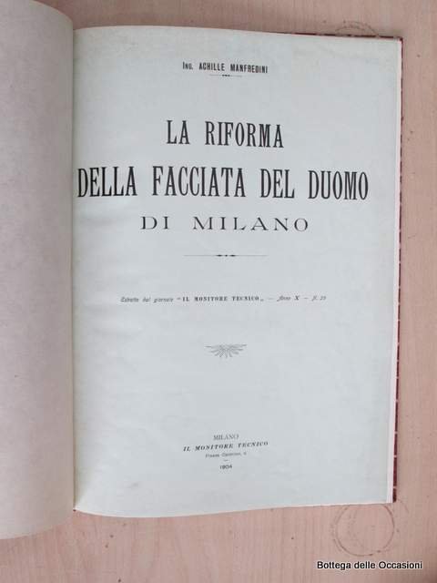 LA RIFORMA DELLA FACCIATA DEL DUOMO DI MILANO. - Estratto dal Giornale "Il Monitore tecnico", Anno X, n. 29.