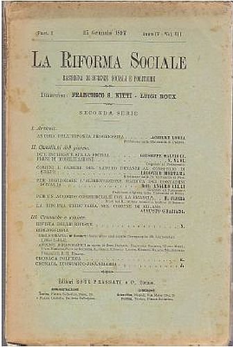 LA RIFORMA SOCIALE rassegna di scienze sociali e politiche