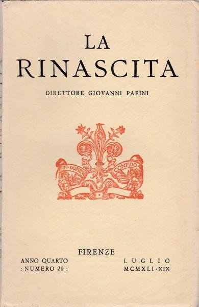 LA RINASCITA DIRETTORE GIOVANNI PAPINI FIRENZE ANNO IV LUGLIO 1941 N. 20 L5750 COPERTINA MORBIDA EDITORIALE CON PICCOLE PIEGHE E STRAPPI AI MARGINI, RIVISTA LEGGERMENTE DEFORMATA, TAGLI IRREGOLARI, LEGGERE FIORITURE A QUALCHE PAGINA, INTERNO IN BUONO STATO DA PAG. 499 A PAG. 651 CM. 25 X 16