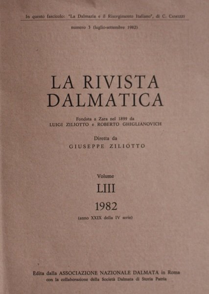 La Rivista dalmatica. Vol. LIII 1982 (anno XXIX - IV serie)