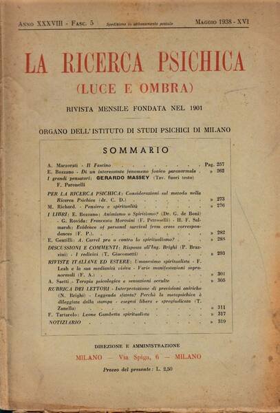 La rivista psichica LUCE E OMBRA, rivista mensile, maggio 1938