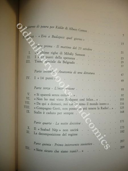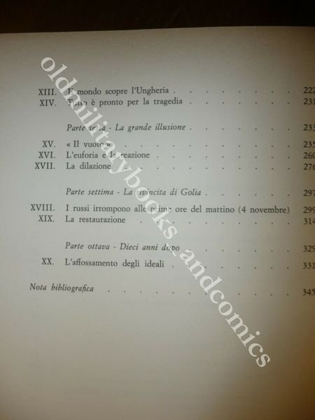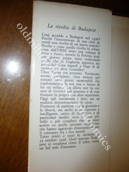 TITOLO: LA RIVOLTA DI BUDAPEST (23 OTTOBRE-4 NOVEMBRE 1956) DESCRIZIONE: Club degli Editori Milano 1969, br. ed. t.t. tit. al tassello con sovracc. ill. col. con alette, pp. 344 ill. b/n f.t. a fine vol. in 8°. L'insurrezione di un'intera città soffocata dai sovietici. CONDIZIONI: Ottime tracce di fox alla sovracc. al retro. PESO / WEIGHT: 700 gr. without package