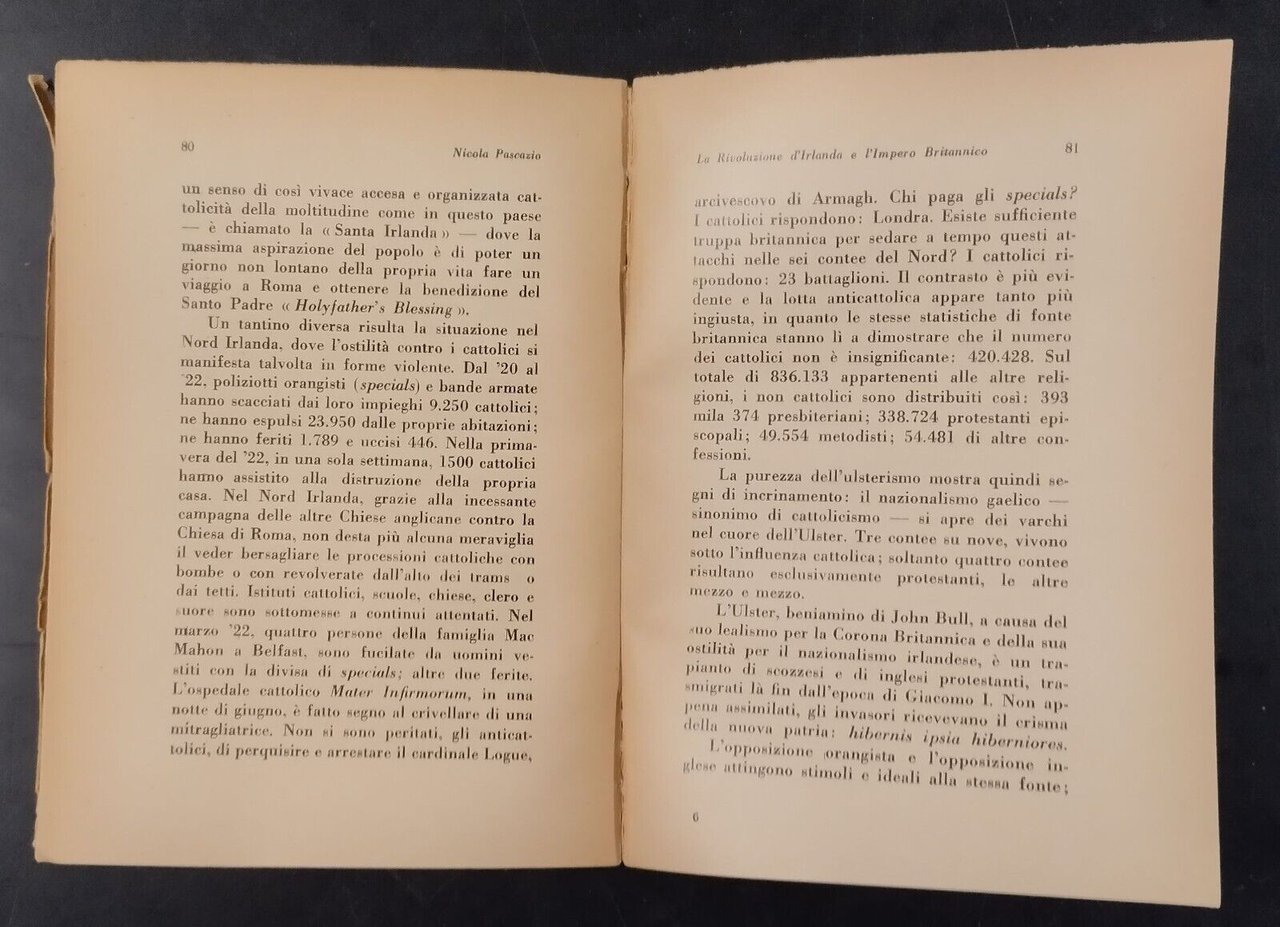 LA RIVOLUZIONE D'IRLANDA E L'IMPERO BRITANNICO di Nicola Pascazio. Nuova Europa Editore, 1934 . 272 pagine, 2 cartine geografiche in bianco e nero fuori testo . Copertina editoriale in brossura. Stato di conservazione: molto buono (pagine normalmente ingiallite, piccole imperfezioni alla copertina) Libro usato saggistica storia politica