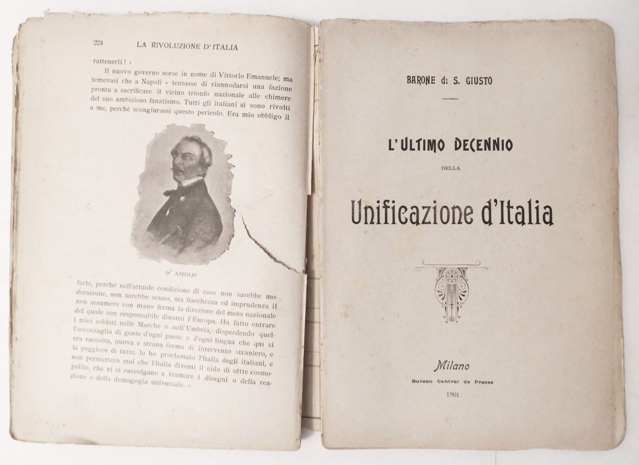 LA RIVOLUZIONE D'ITALIA DAL 46 AL 70 + DECENNIO Barone di San Giusto 1900 Libro