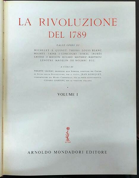 La rivoluzione del 1789 dalle opere di Michelet, E. Quinet, Thiers, louis blanc, Mignet, Taine, I. Goncourt, Sorel, Jaurès, Lavisse, F. Masson, Aulard, Mathiez, Barthou, Lenotre, Madelin, De Nolhac, Ecc. A cura di Philippe Sagnac, Jean Robiquet e Cesare Giardini.