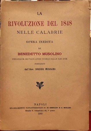 La rivoluzione del 1848 nelle Calabrie. Opera inedita di Benedetto Musolino preceduta da pochi cenni storici sulla sua vita pubblicati dall.Avv. Saverio Musolino