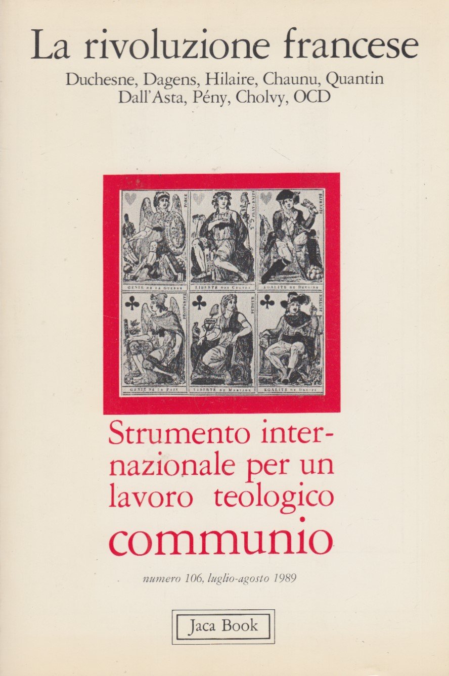 In-8 (Cm 23 x 15), pp. 119, brossura editoriale. Testi di Jean Duchesne, Claude Dagens, Yves-Marie Hilaire, Jean Chaunu, Jean-Louis Quantin - Adriano Dell'Asta, Jean Marie Peny, Peguy e la rivoluzione, Gerard Cholvy. Numero della rivista Communio, 106 Luglio-Agosto 1989. Normali segni del tempo. MOLTO BUONO