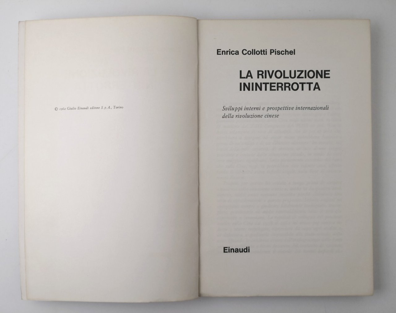 LA RIVOLUZIONE ININTERROTTA di Enrica Collotti Pischel 1962 Einaudi Libro Cina
