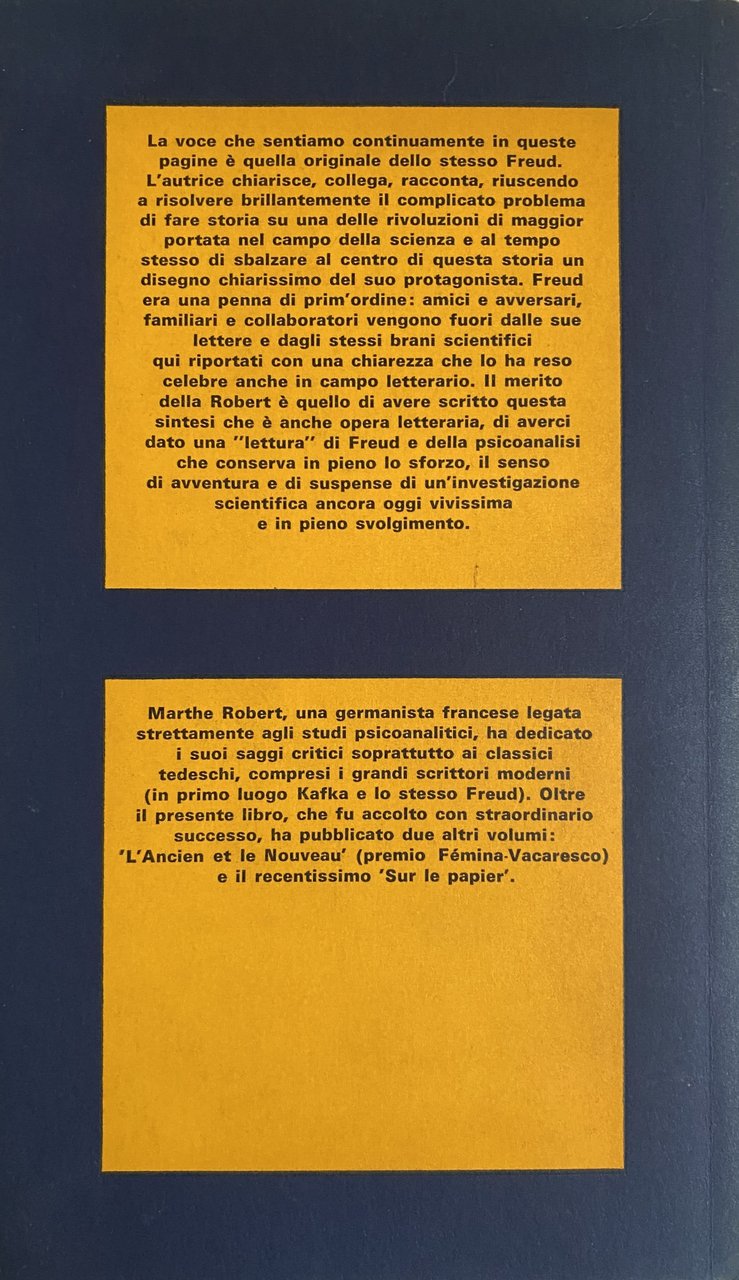 La voce che sentiamo continuamente in queste pagine è quella originale dello stesso Freud. L'autrice chiarisce, collega, racconta, riuscendo a risolvere brillantemente il complicato problema di fare storia su una delle rivoluzioni di maggior portata nel campo della scienza e al tempo stesso di sbalzare al centro di questa storia un disegno chiarissimo del suo protagonista. Freud era una penna di prim'ordine: amici e avversari, familiari e collaboratori vengono fuori dalle sue lettere e dagli stessi brani scientifici qui riportati con una chiarezza che lo ha reso celebre anche in campo letterario. Il merito della Robert è quello di avere scritto questa sintesi che è anche opera letteraria, di averci dato una lettura di Freud e della psicoanalisi che conserva in pieno lo sforzo, il senso di avventura e di suspense di un'investigazione scientifica ancora oggi vivissima e in pieno svolgimento.