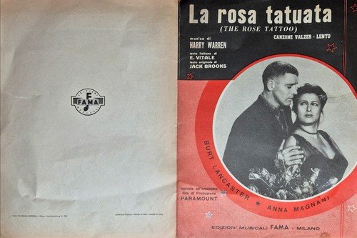 LA ROSA TATUATA spartito della canzone del film Burt Lancaster e Anna Magnani