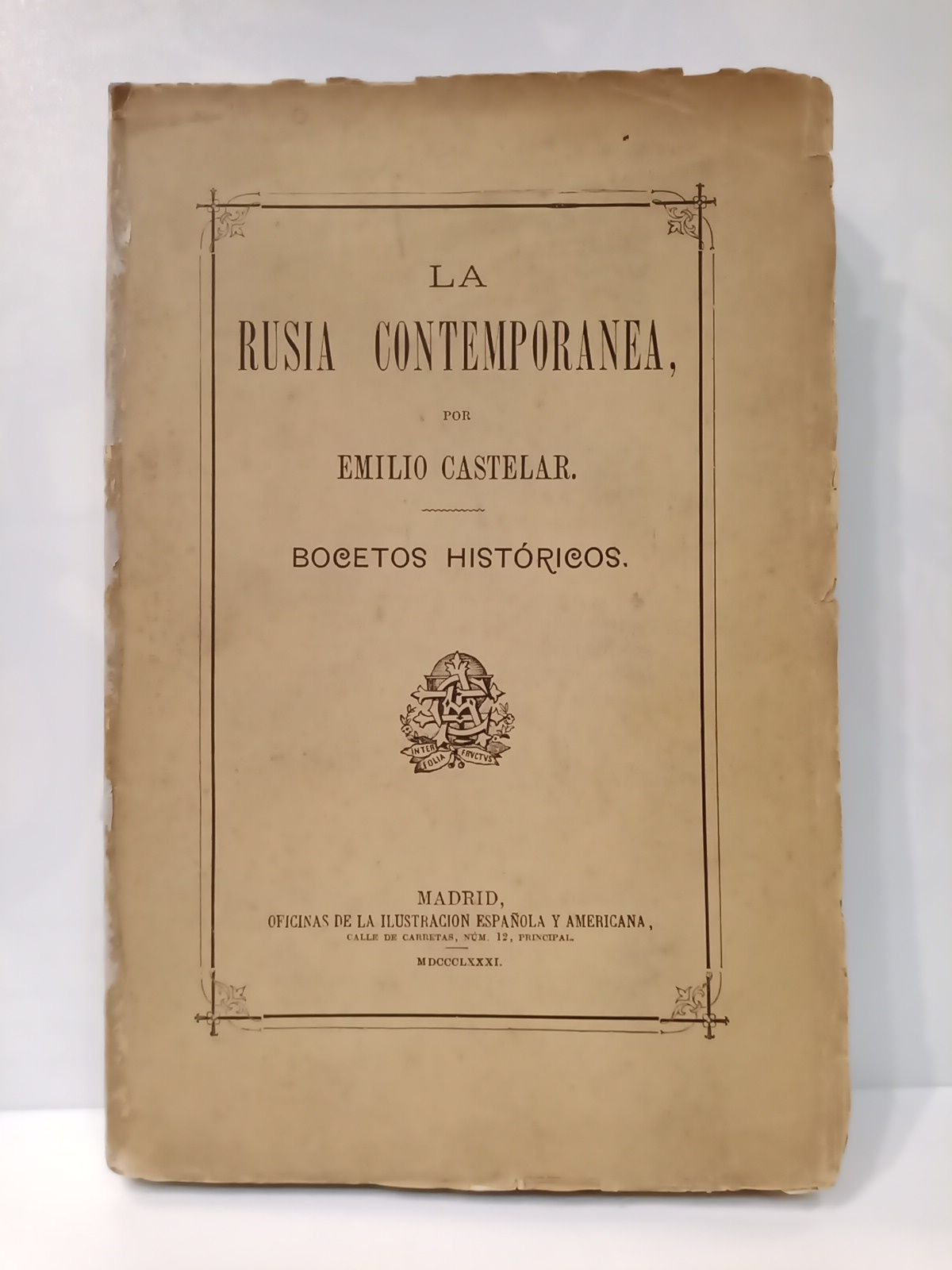 Madrid: Oficinas de la Ilustración Española y Americana, 1881.- 370 p.; 4º menor (21,7 x 14,5 cm).* Lomo reforzado. HISTORIA Y POLÍTICA DE LOS SIGLOS XVI-XXI E HISTORIAS GENERALES EXTRANJERAS