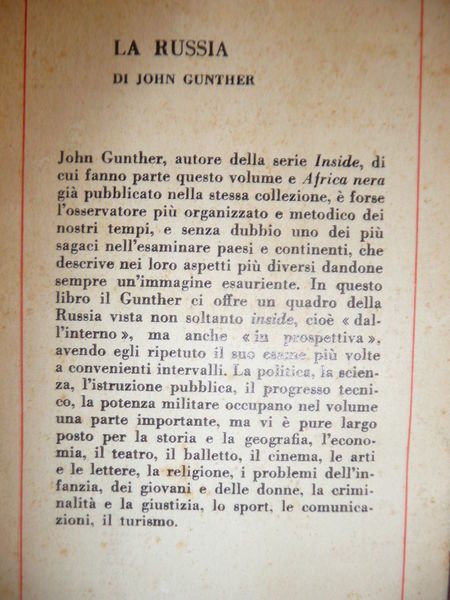LA RUSSIA JOHN GUNTHER LA RUSSIA DALL'INTERNO ED IN PROSPETTIVA POLITICA