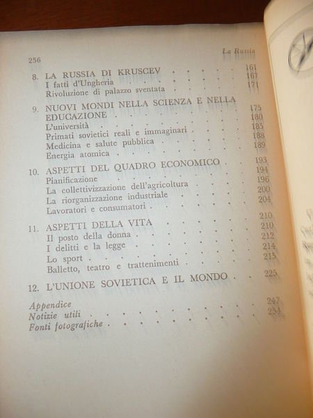 DESCRIZIONE: Garzanti Milano 1965 II^ Ed., br. ed. pp. 254 in 16°, num. ill. b/n f.t. ed 1 cartina. Il volume affronta a tutto tondo il mondo, la storia, la geografia l'economia gli usi e costumi della Russia. Indice completo in foto a fine inserzione. CONDIZIONI: Buone, lievi mancanze alla sovracc. PESO / WEIGHT: 213 gr. without package