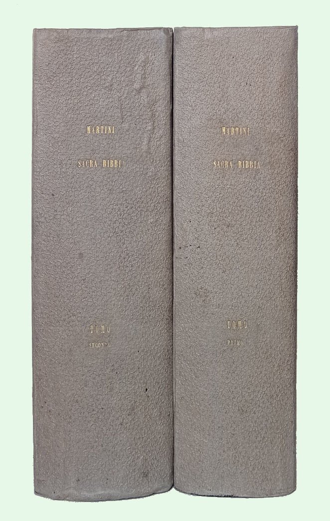 2 vol. in 8 gr., p. XVI - 2488 consecutive per i 2 volumi, 1 tavola all'antiporta con ritratto di A. Martini, 22 tavole fuori testo incise all'acquaforte (compresa 1 carta geografica ripiegata) nel primo volume e 22 tavole fuori testo incise nel secondo volume; leg. coeva in tutta tela con tit. in oro al dorso. - Manca il secondo volume con il Nuovo Testamento.