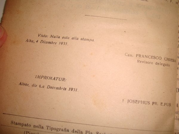 PIA SOCIETA' SAN PAOLO ROMA ITALIA ALBA, 1931