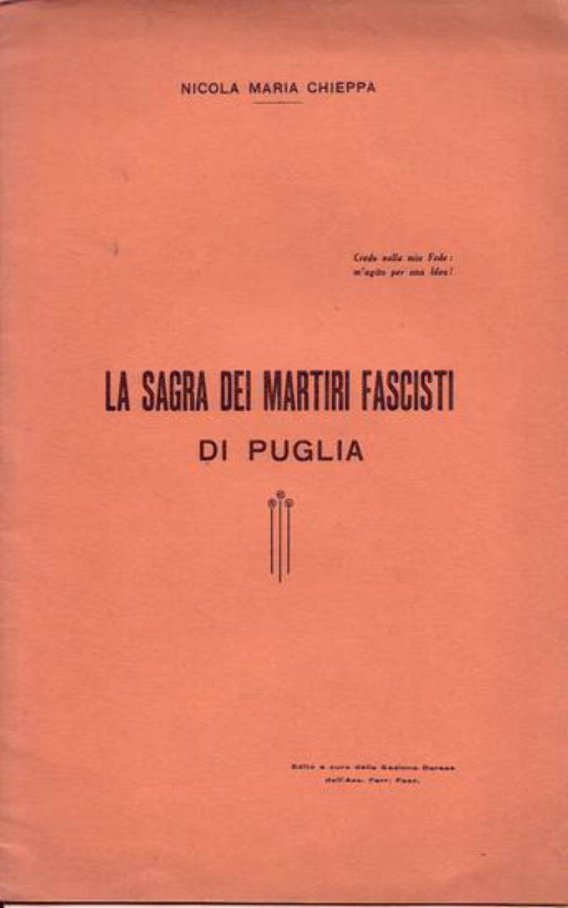 LA SAGRA DEI MARTIRI FASCISTI DI PUGLIA di Nicola Chieppa 1932 ferrovieri Libro