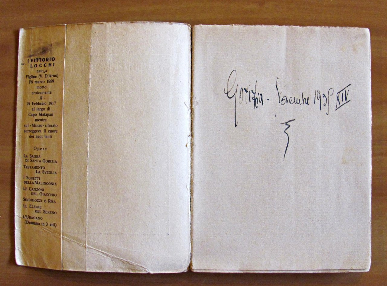 Xilografie in tinta anche a piena pagina di Filippo Binaghi. Ed. L'Eroica - Milano, 1932. Brossura editoriale con ali con imperfezioni del tempo al dorso. Vecchia firma di appartenenza in antiporta. 13x17; pp. 78 + piccola antologia delle altre opere di Vittorio Locchi (pp. non numerate). BUONISSIMO STATO , Molto buono (Very Good)