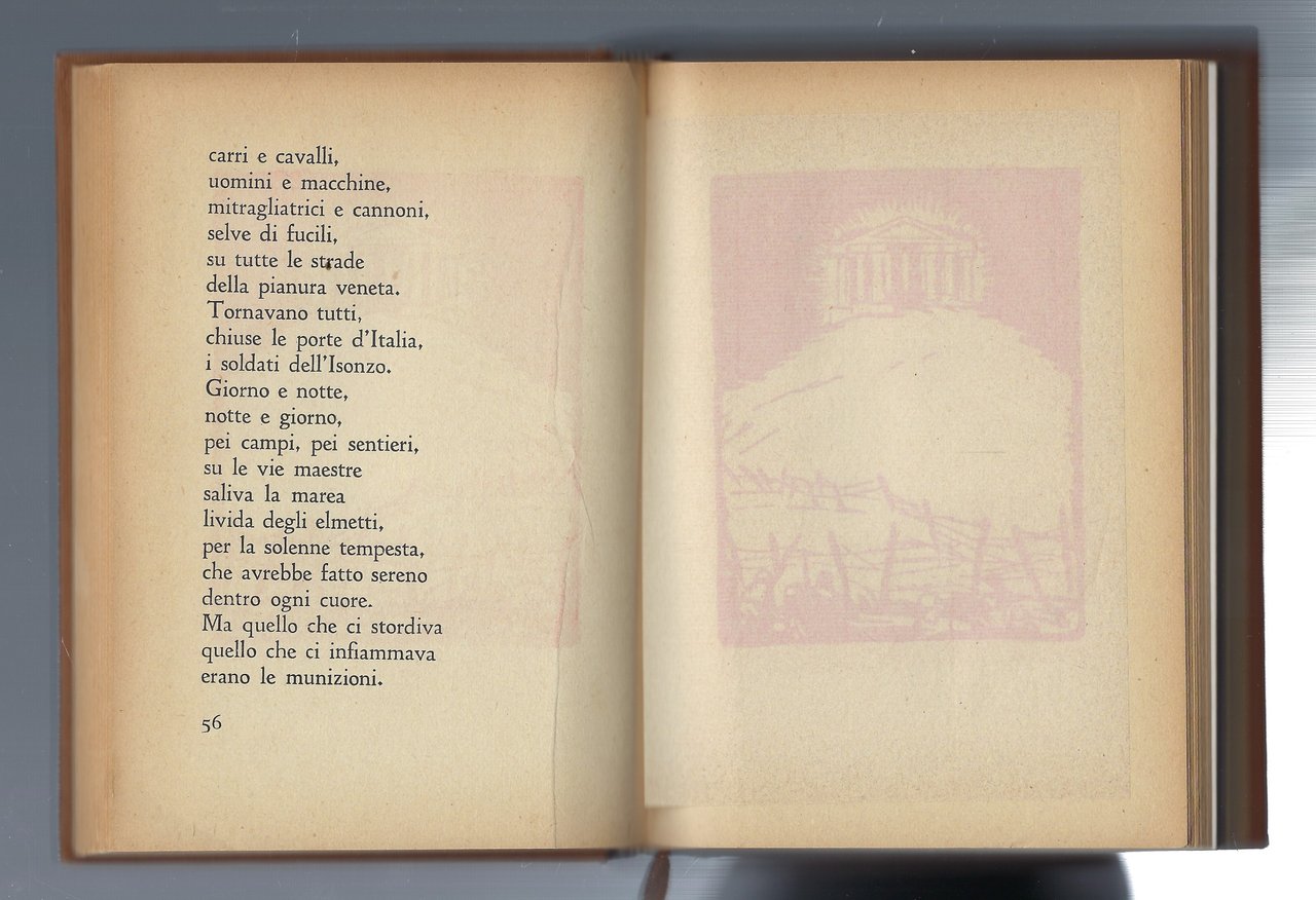 Xilografie stampate in rosso, protette da veline, di Francesco Gamba.