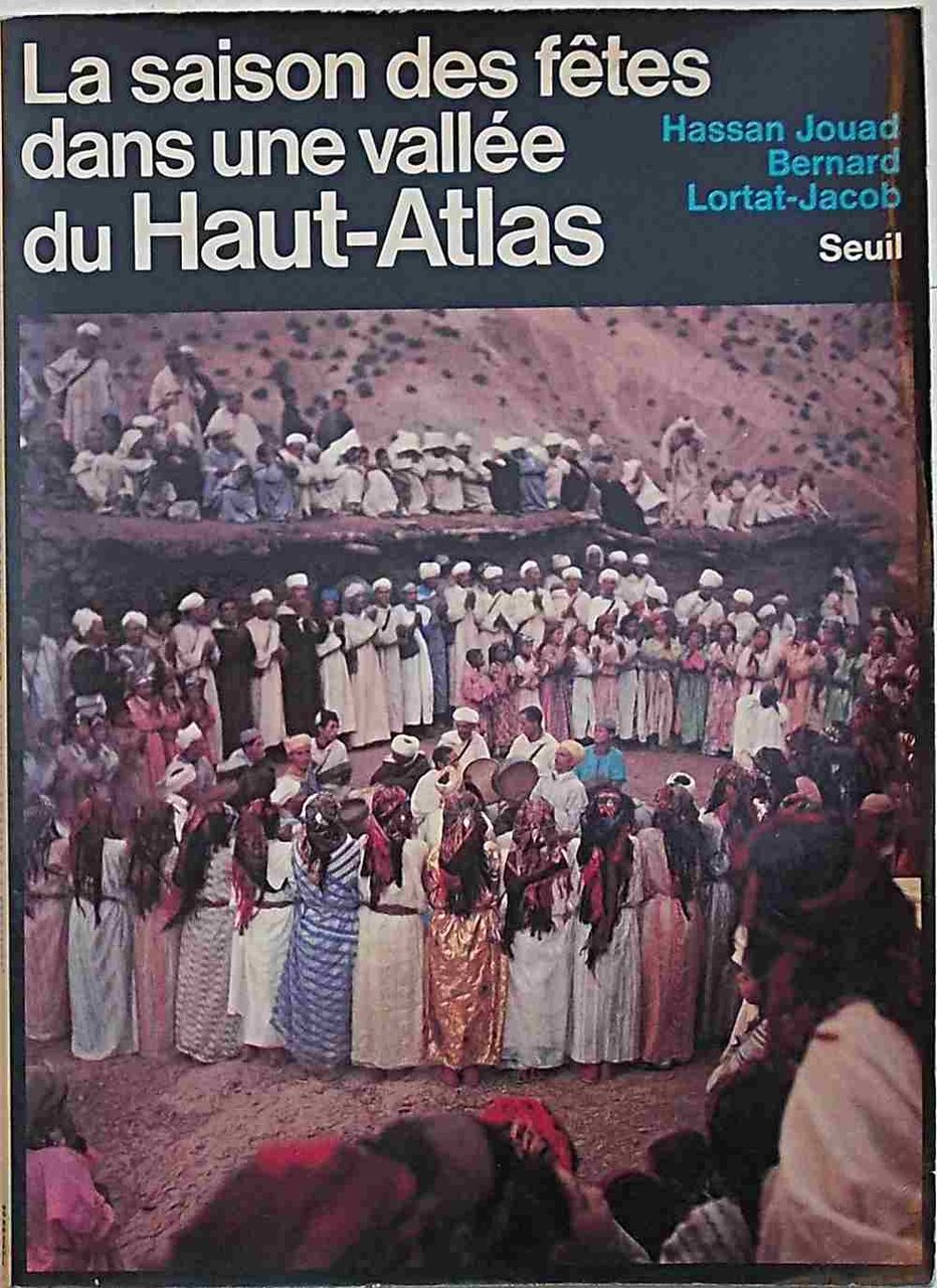 In 4° (cm. 28 x 20); pagg. 107; con numerosissime tavole fotografiche a colori n.t. e fotografie n.t.; leggera cartonatura originale figurata a colori. VG-. ** Berberi. "Aucune population n'a donné naissance à autant de mythes que quelle des Berbères. L'été est la saison des fetes, le lieu par excellence de la vie collective. La fete au Haut-Atlas est d'abord une effervescence sociale revécue périodiquement." Opera realizzata grazie ai risultati di numerose missioni del Musée de l'Homme.