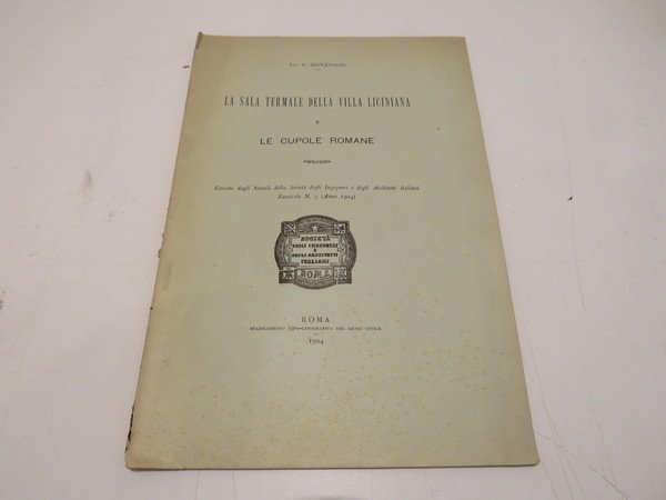 Roma, Stabilimento Tipo-Litografico del Genio Civile, 1904. In -8, pp. 39 con illustrazioni in nero nel testo e 2 piante ripiegate fuori testo. Brossura editoriale. Estratto dagli "Annali della Società degli Ingegneri e degli Architetti italiani, fasc. n. 3 (anno 1904). Invio autografo firmato dell'Autore.