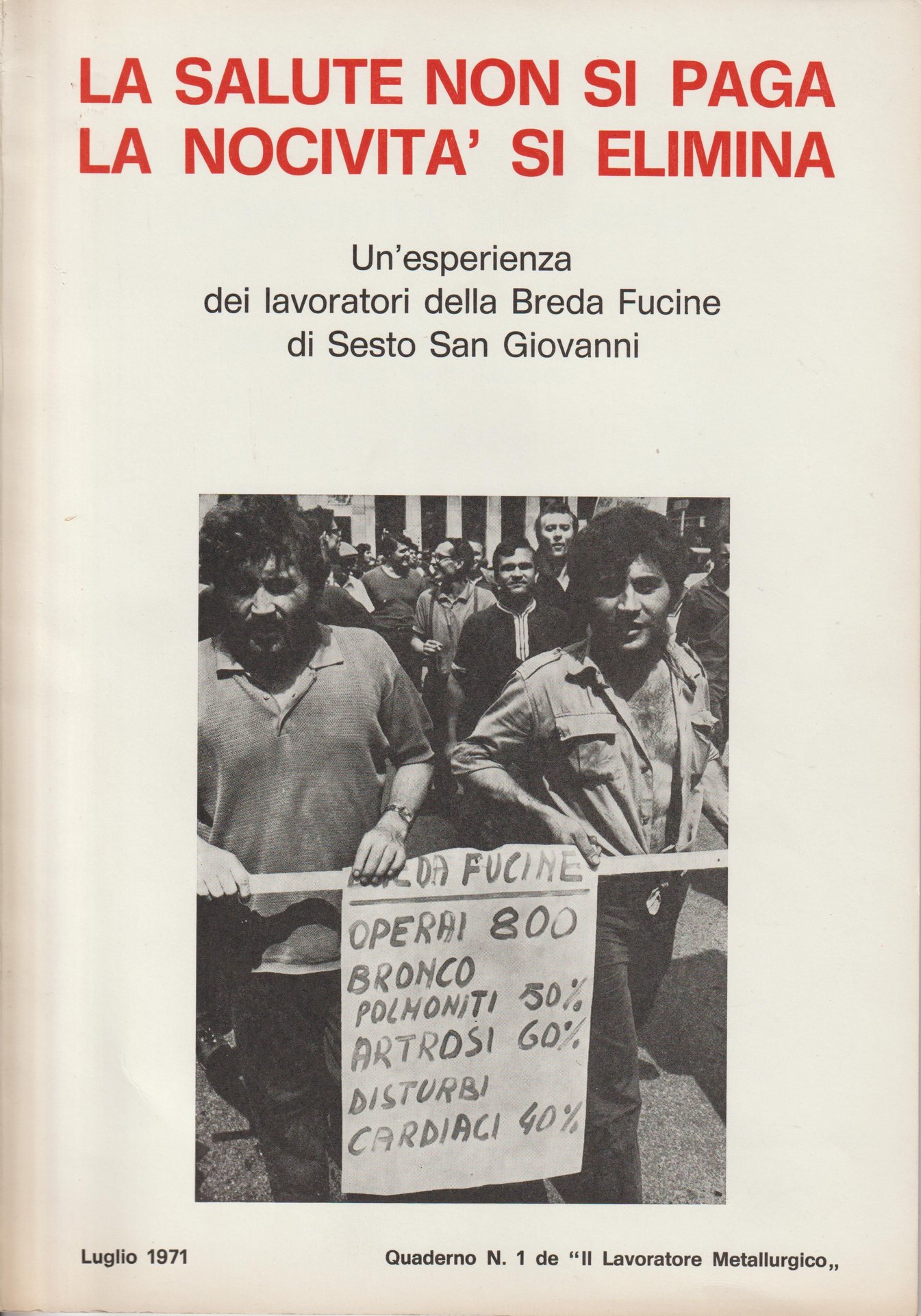 (La) salute non si paga. La nocività si elimina. Un'esperienza dei lavoratori della Breda Fucine di Sesto San Giovanni. Quaderno N. 1 de "Il lavoratore metallurgico"