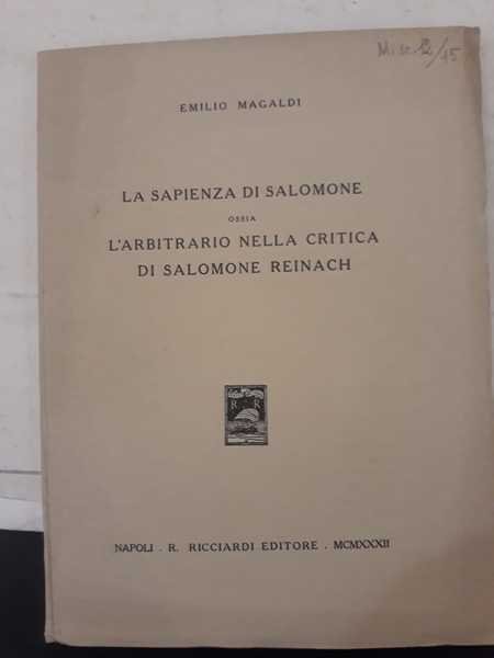 La sapienza di Salomone ossia l'arbitrato nella critica di Salomone Reinach