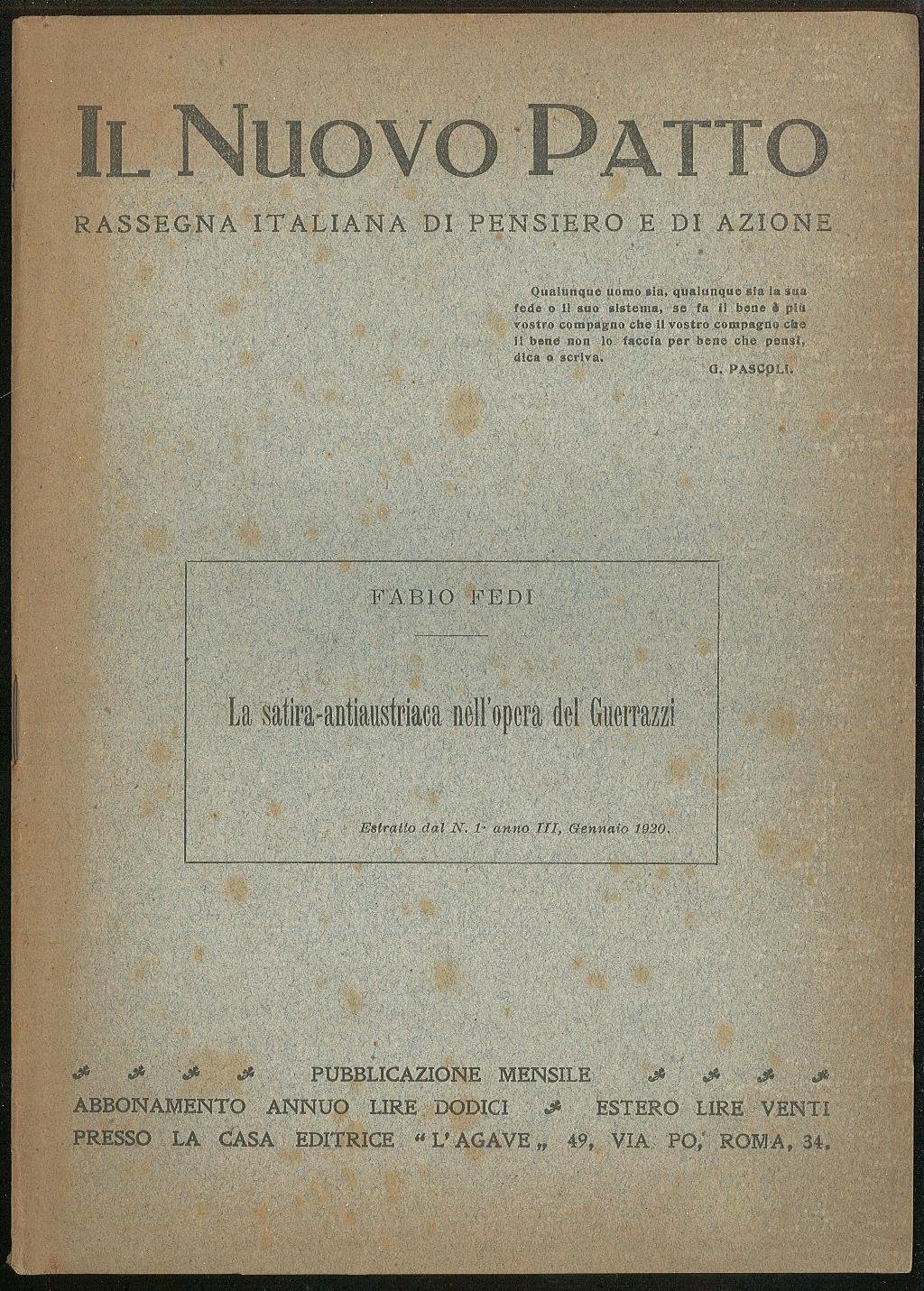 Opuscolo vintage. Estratto dal n. 1 , Anno III, gennaio 1920. Dedica dell'autore in testa al frontespizio. Evidenti fioriture interne ed esterne. Strappo al frontespizio. Ordinario segno del tempo