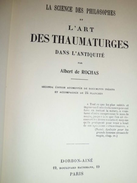La science des philosophes et l' art des thaumaturges dans l' antiquité