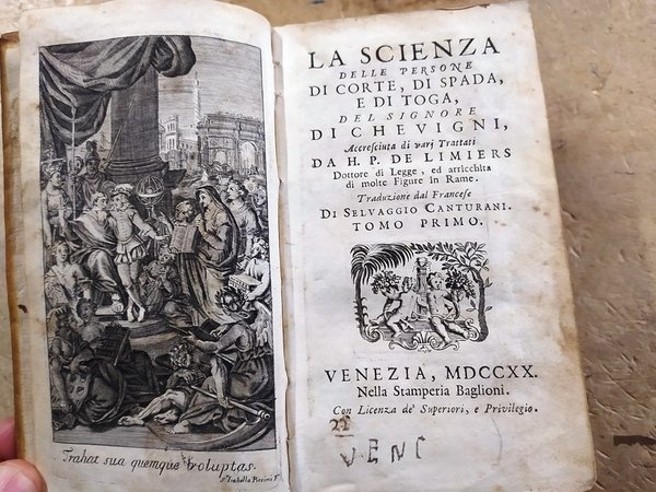 La scienza delle persone di corte, di spada e di toga.accresciuta di varj Trattati da H.P. De Limiers. Traduzione dal Francese di Selvaggio Canturani