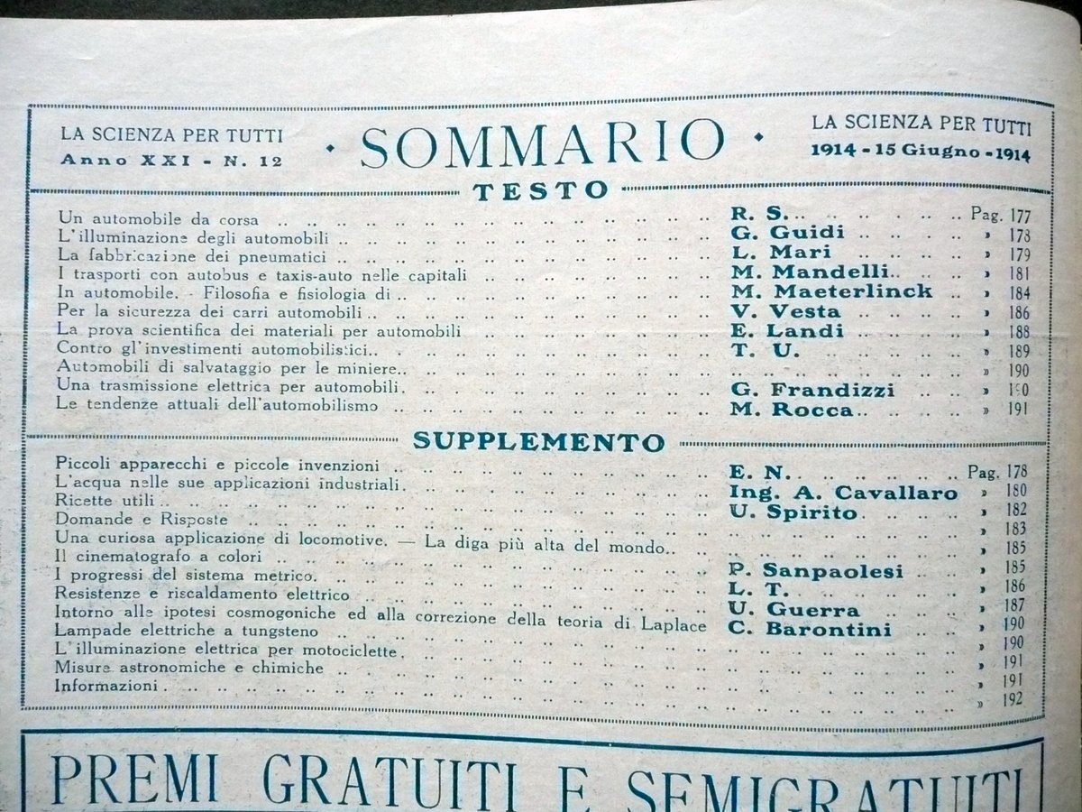 La Scienza per Tutti Anno XXI Numero 12 15/6/1914 Monografico Automobilismo