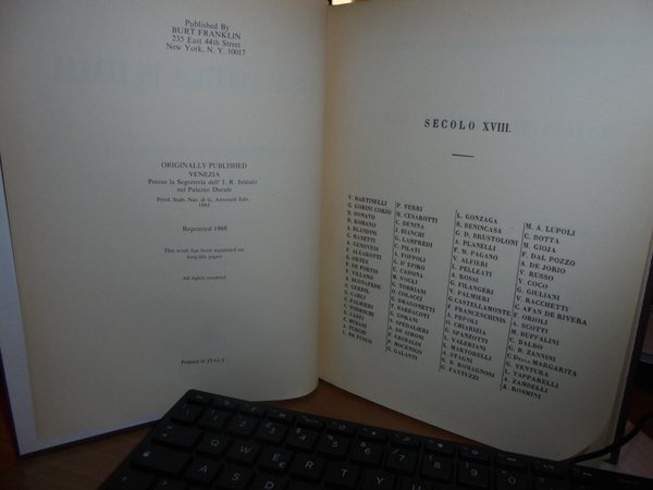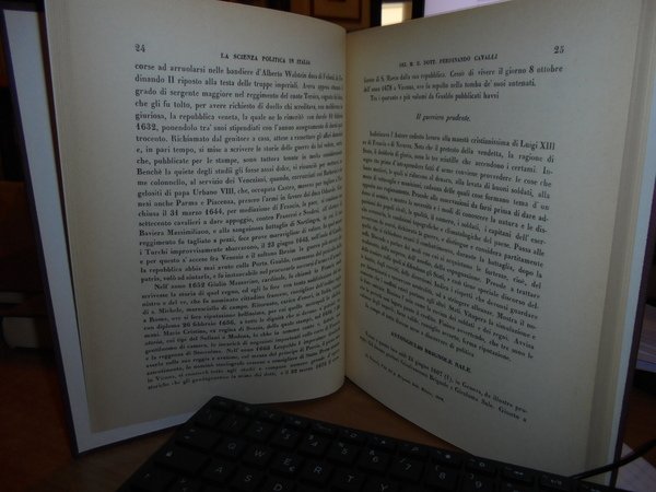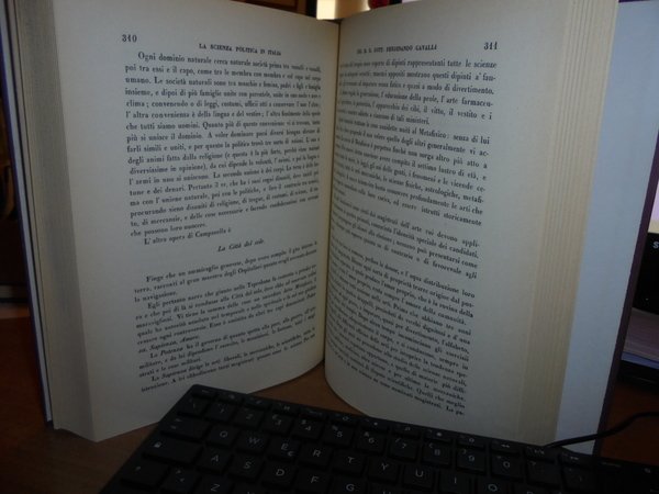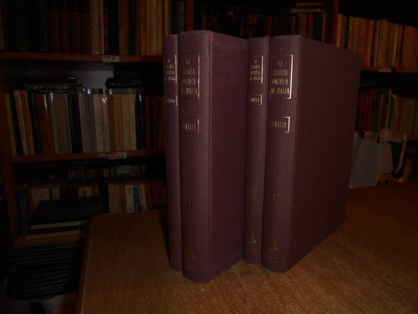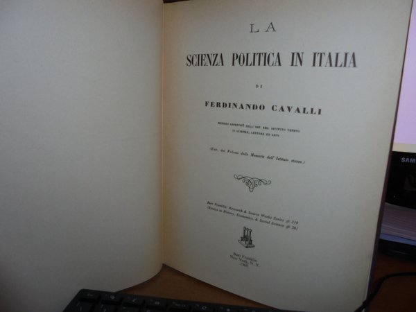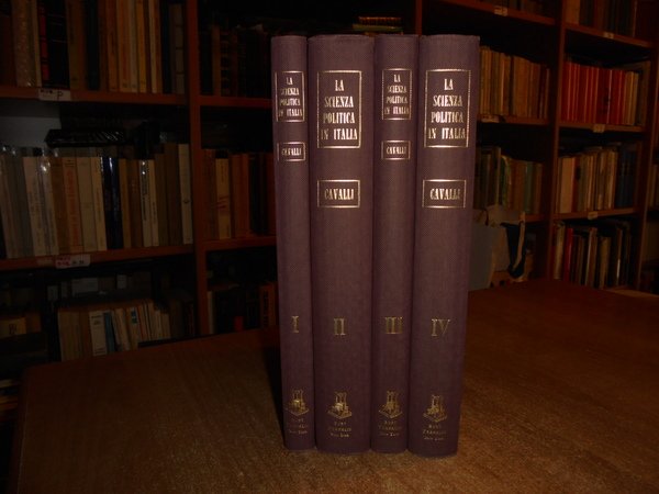 di FERDINANDO CAVALLI. New York, Burt Franklin, 1968. LA SCIENZA POLITICA IN ITALIA. 4 volumi in-8° grande, tela con titoli in oro sui dorsi. 202, 444, 239, 385 pp. Reprinted 1968. Ottimi esemplari. Uff. B - III - 4