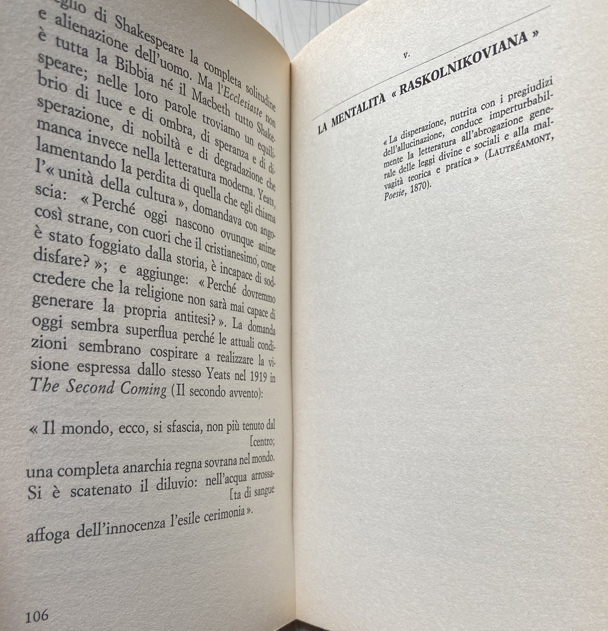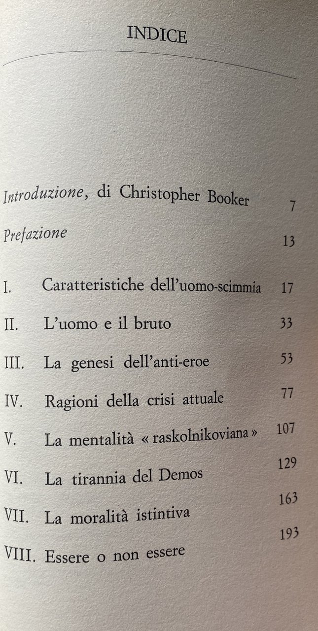 Soggetti: Romanzi, Storia, Critica letteraria, Letteratura contemporanea, Teoria, Società scadente, Studi culturali, Scrivere, Lettura, Scrittura To Be Or Not To Be, A Question of Survival XVIII secolo Astrattismo Assurdo Brutalità Estetica Alfred Jarry Anarchia Arnold Artisti Atteggiamento Avanguardia Comportamento Credenza C.S. Lewis Camus Christopher Booker Civiltà Concetto Classico Confronto Scrittori contemporanei Crimine Cultura Disperazione Dramma Ceto Dominante Egualitario Eliot Emotivo Esistenza Esistenzialismo Ezra Pound Harvard Esteti I. A. Richards Iconoclastia Ideale Ignoranza Istintivo Intellettuali Jane Austen Jarry Jimmy Porter John Osborne Londra Maggioranza Mentalità Manifestazione Uomo Umanità Massa Moderna Natura Morale Neoclassicismo Norma Romanzo Passione Père Ubu Filosofico Poeta Politico Primordiale Affermativo Problema Professore Raskolnikov Reazione Razionale Raskolnikoviana Ragione Rifiuto Religione Moderazione Rivoluzione Romantico Romanticismo Sartre Senso Shakespeare Significato Situazionale Etica Stephen Spender Spengler Shakespeare Spirituale Suicidio T. S. Eliot Teorie Pensiero Tendenza Tradizionale Scimmie Pantaloni Universo Violenza Animalismo Virtù Wellwarth Paradosso Assurdo Correnti letterarie Surrealismo Espressionismo Western Parole Gioventù Libri rari Vintage fuori catalogo Collezionismo Saggi critici Analisi Mitologia Miti Sisifo Demoni Moralità Essere o non essere Yeats Secondo Avvento Bibbia Cristianesimo Occidente Macbeth Wertham Caino Abele Antinomianismo Disprezzo Autoritarismo Tirannia Fascismo Totalitarismo Tom Paine Candido Voltaire George Orwell 1984 Rivoluzione Crane Brinton Pitirim Sorokin Comunismo Cina Russia Stati Uniti Imperialismo Capitalismo Fattoria degli animali Selvaggio Libertà Individualismo Rivolta Dissenso Rivoluzione Wordsworth Poesia Morte Resistenza Guerra Schiavitù Oppressione Libertà Sfruttamento Antisemitismo Razzismo Crisi Fede Eroi Che Guevara Osborne Dostoevskij Louis Reik Ho-Chi-Min Thoreau Salinger Generazioni Giovanile Lionel Trilling Nathan Glazer Paul Goodman Clement Greenberg Fiedler Elizabeth Hardwick Tramonto Faulkner Tennyson Ulisse Anglistica Inglese Americana Europea John Donne Anni Settanta Dibattiti Pope Relativismo Assolutismo Radicalismo Politica Sinistra Yvor Winters Henry Miller Bunuel Cinema Ernst Junger Psicologia Psicanalisi Filosofia Novels, History, Literary criticism, Contemporary literature, Theory, Poor society Cultural studies Writing Reading, Writing 18th century Abstractionism Absurd Brutality Aesthetics Anarchy Artists Attitude Avant-garde Behavior Belief Civilization Concept Classic Comparison Contemporary writers Crime Culture Despair Drama Dominant Class Egalitarian Emotional Existence Existentialism Aesthetes Iconoclasm Ideal Ignorance Instinctive Intellectuals London Majority Mentality Manifestation Man Modern Humanity Nature Moral Neoclassicism Norm Novel Passion Philosophical Philosophy Poet Political Primordial Affirmative Problem Professor Rational Raskolnikovian Reaction Reason Rejection Religion Moderation Revolution Romantic Romanticism Sense Meaning Situational Ethics Spiritual Suicide Theories Thought Trend Traditional Monkeys Pants Universe Violence Animalism Virtue Paradox Literary currents Surrealism Expressionism Words Youth Rare books out of print Collectibles Critical essays Analysis Mythology Myths Sisyphus Demons Morality Second Advent Bible Christianity West Antinomianism Contempt Authoritarianism Tyranny Fascism Totalitarianism Candid Revolution Communism China United States Imperialism Capitalism Animal Farm Wild Freedom Individualism Revolt Dissent Revolution Poetry Death Resistance War Slavery Oppression Freedom Exploitation Antisemitism Racism Crisis Faith Heroes Generations Youth Ulysses Anglicistics English American European 1970s Debates Relativism Absolutism Radicalism Left Politics Psychology Psychoanalysis