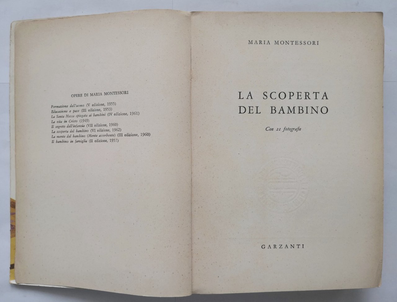 LA SCOPERTA DEL BAMBINO di Maria Montessori 1962 Garzanti Libro pedagogia