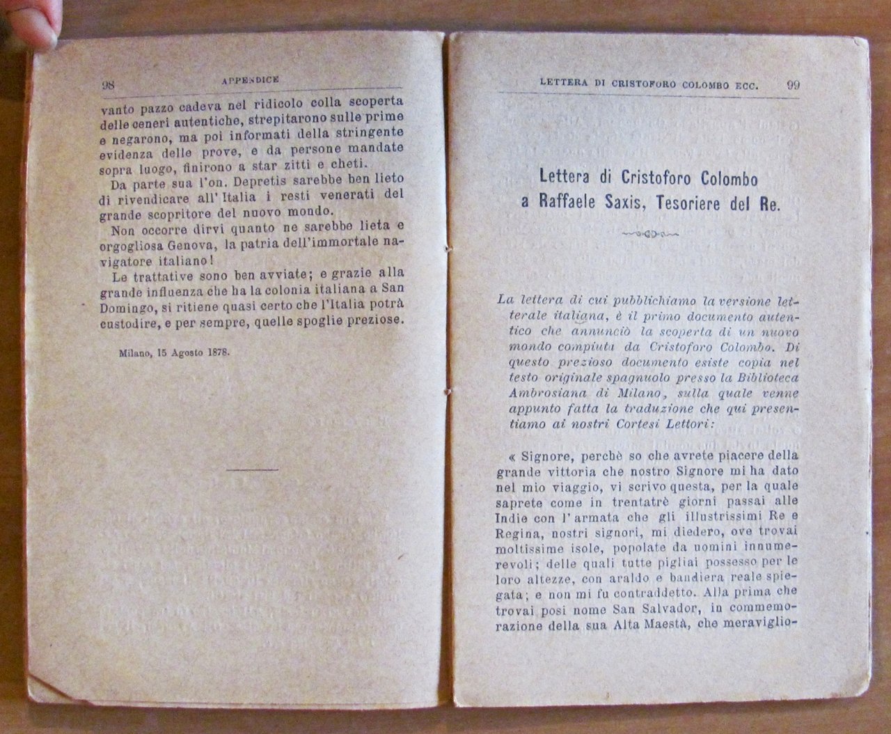 L'unica versione originale preceduta dalla biografia e dal ritratto dell'autore aggiuntovi un appendice sulla scoperta recente delle ceneri di Colombo ed il primo documento ufficiale della scoperta del Nuovo Mondo. Volume Unico. 2 tavole in b/n a piena pagina. Casa Editrice Guigoni - Milano, 1884. Brossura editoriale. 10,5x16; pp.112. Raro e in Ottimo stato. , Ottimo (Fine)