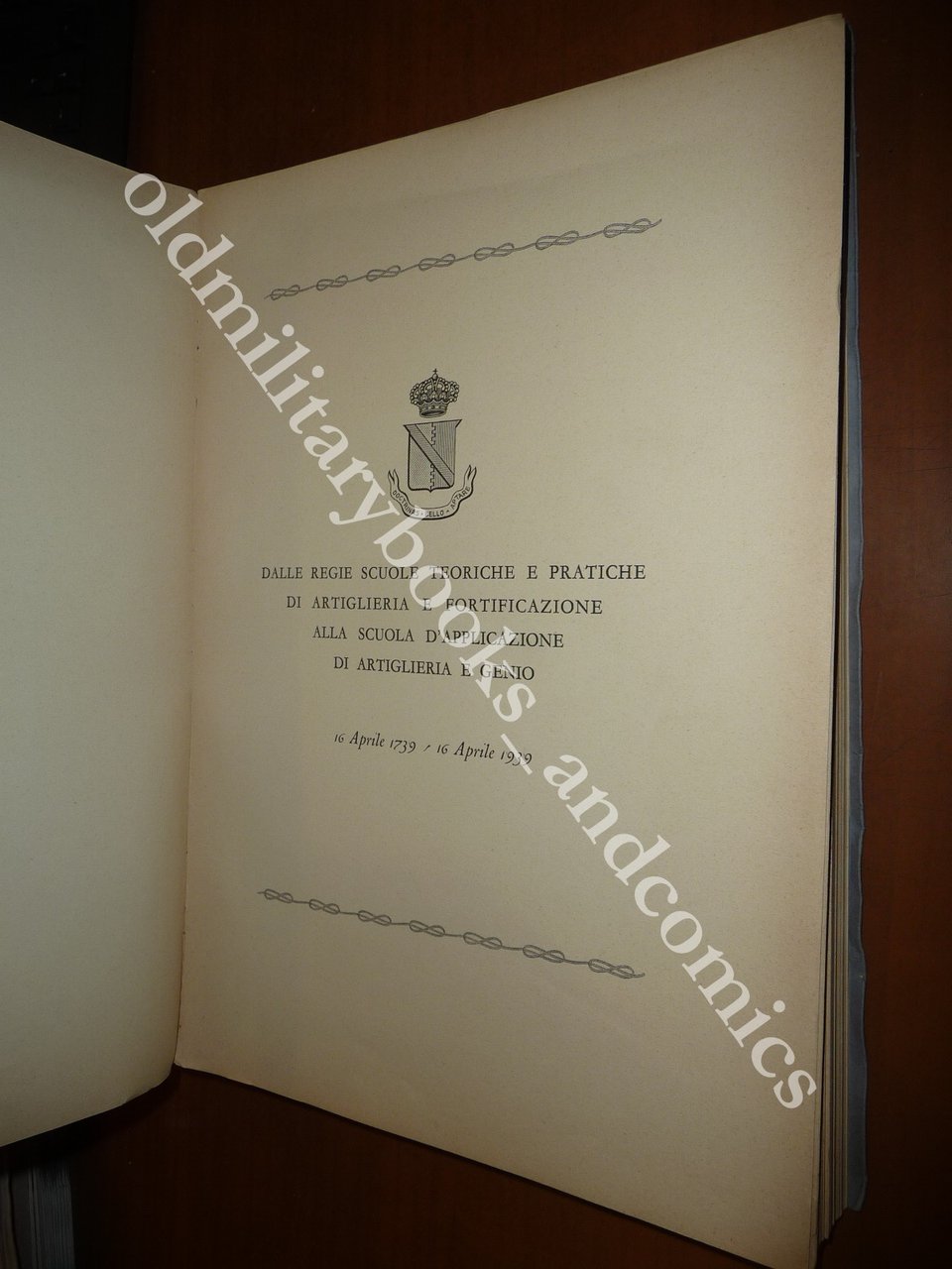 TITOLO: DALLE REGIE SCUOLE TEORICHE E PRATICHE DI ARTIGLIERIA E FORTIFICAZIONE ALLA SCUOLA D'APPLICAZIONE DI ARTIGLIERIA E GENIO (16 APRILE 1739 - 16 APRILE 1939)